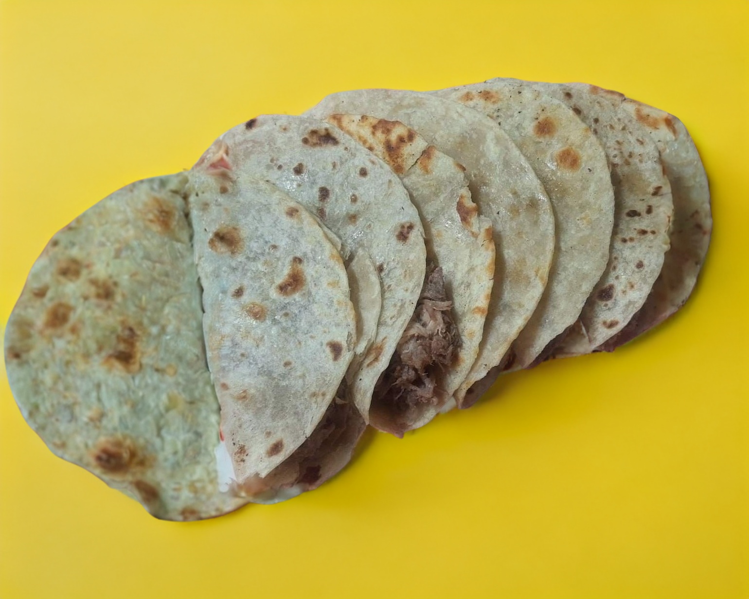 5 taquitos de tortilla de arina de barbacoa incluye: cebolla con cilantro,limón y salsa Tlaquepaque o salsa verde taquera
