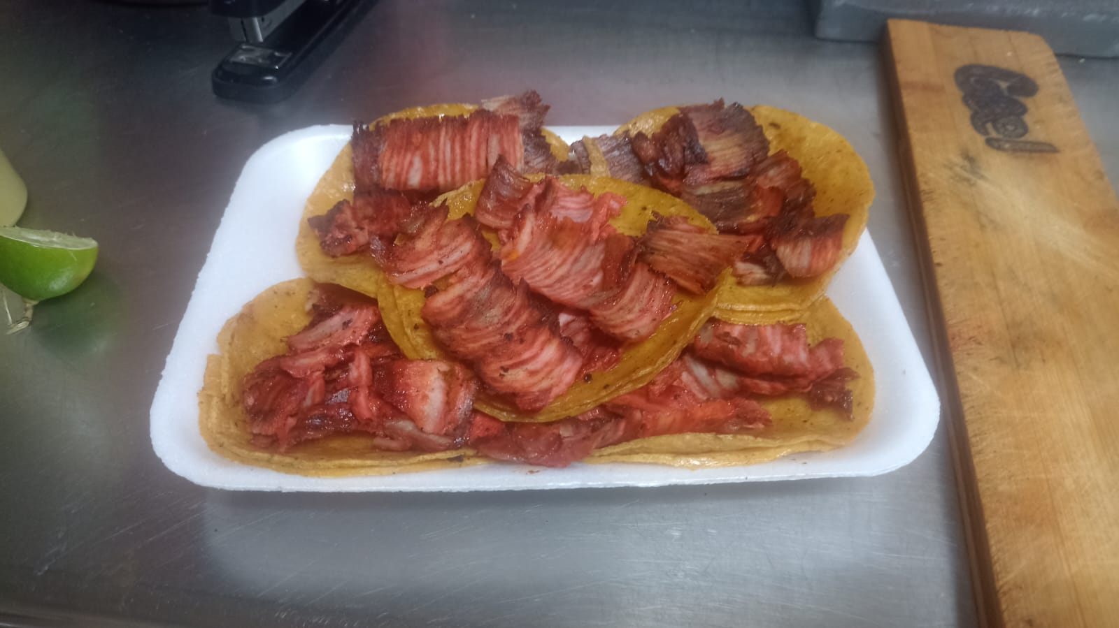 5 taquitos de carne asada diariamente en tortilla de maíz incluye:pico de gallo,limón,cebolla asada,chile toreado y salsa verde
