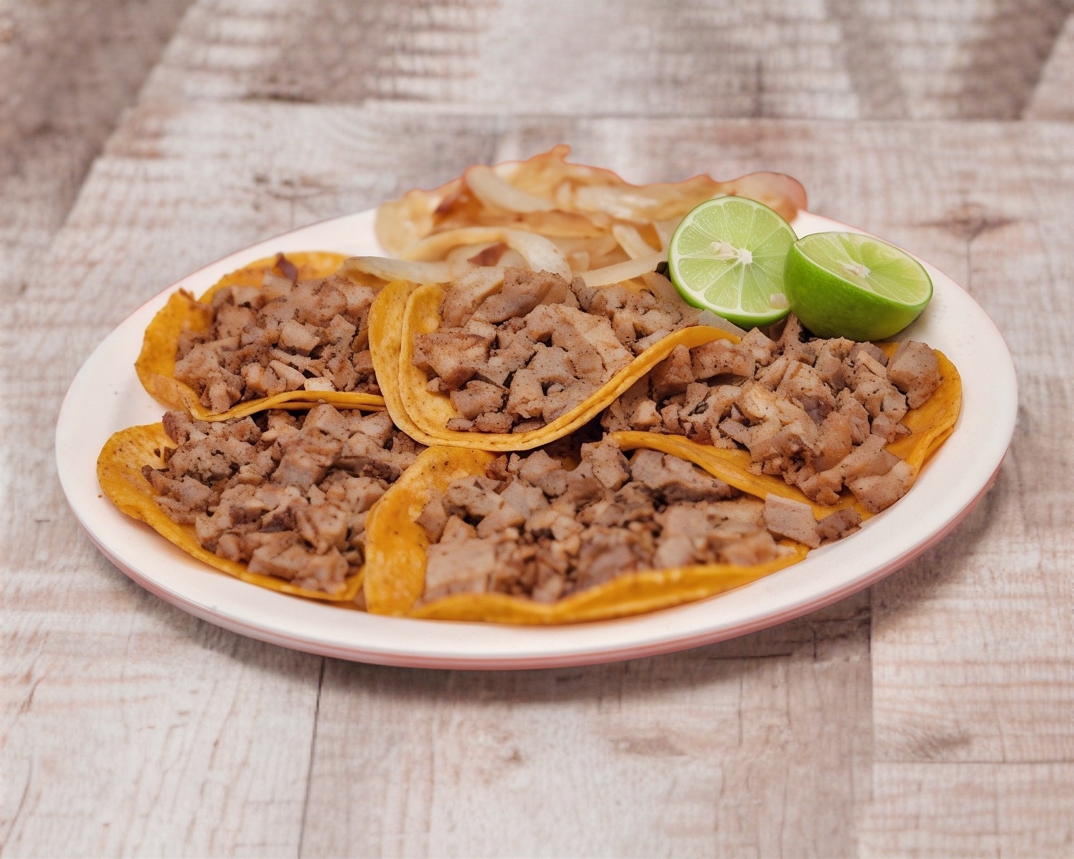 5 tacos de bistec en tortilla de maiz