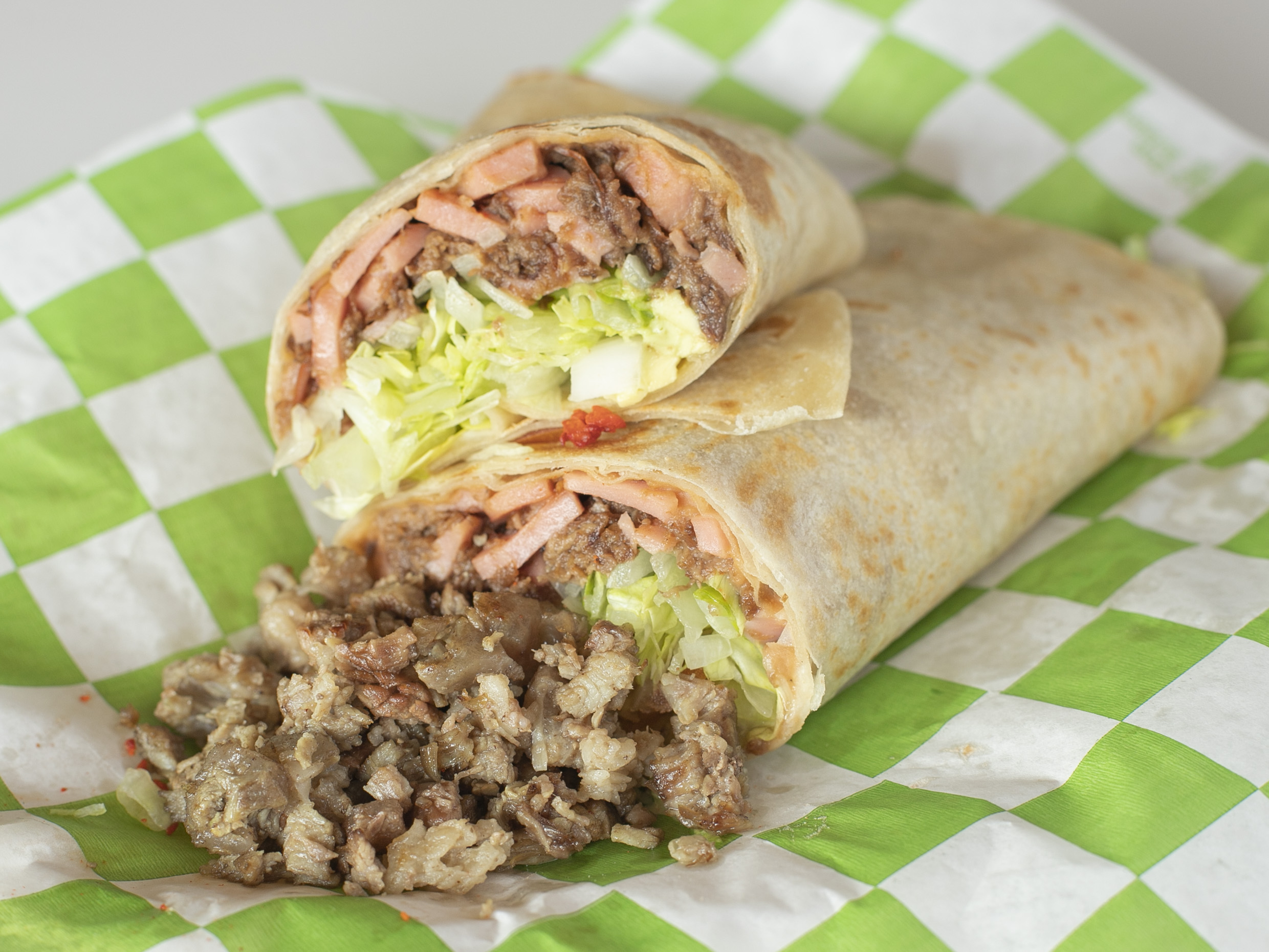 Borrito de desebradra salchicha de pavo lechuga jitomate cebolla aguacate jalapeño +Pepsi según bebida en existencia