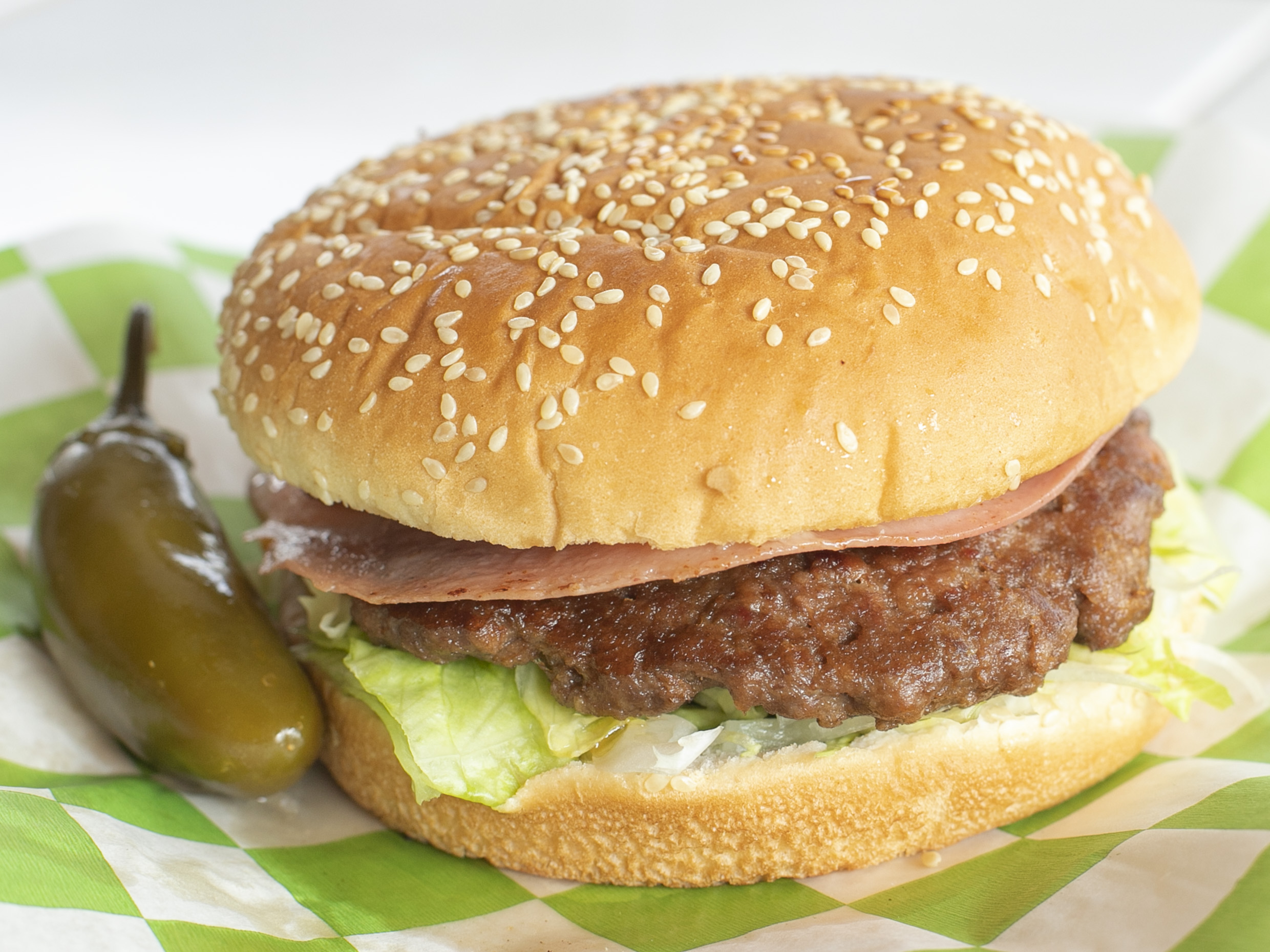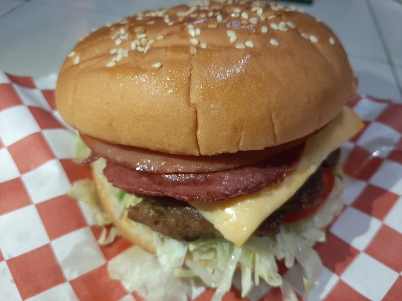 Carne de res 130gram + bistec queso asadero mayonesa jamón salami papás ala francesa jalapeño