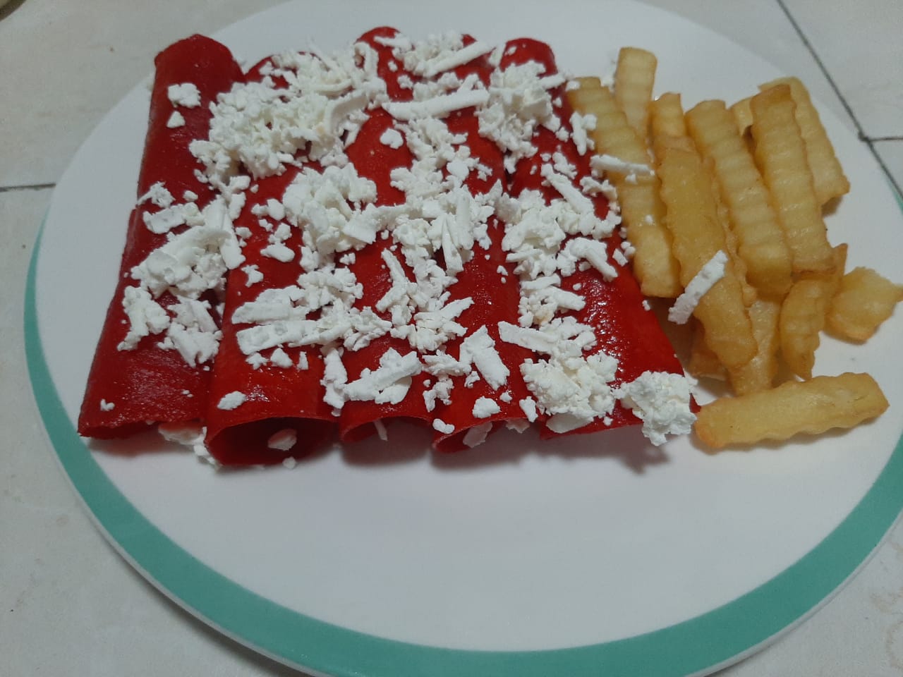 Orden con 5pzs tortilla roja con queso ensalada lechuga jitomate cebolla salsas