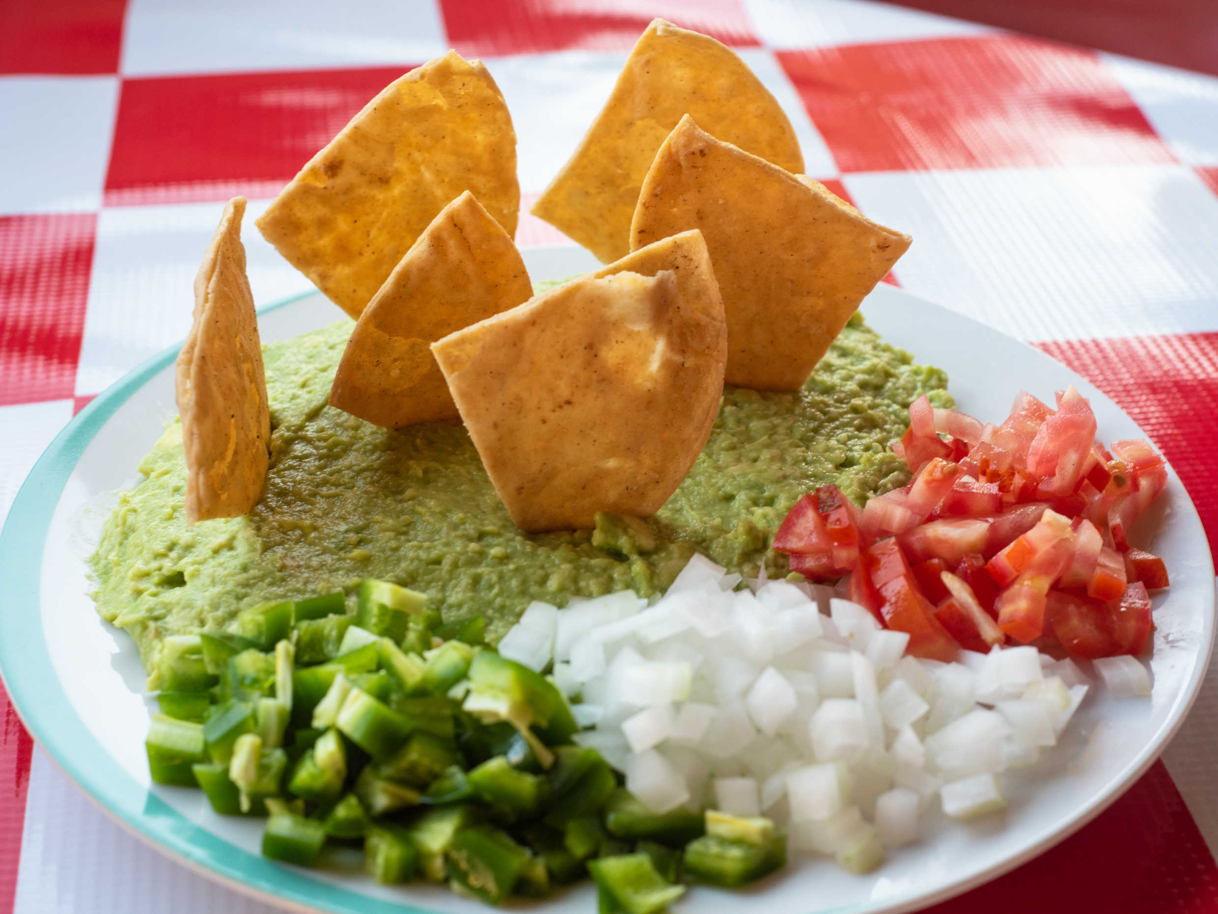 Deshebrada. lechuga, tomate, cebolla, aguacate y jalapeño.