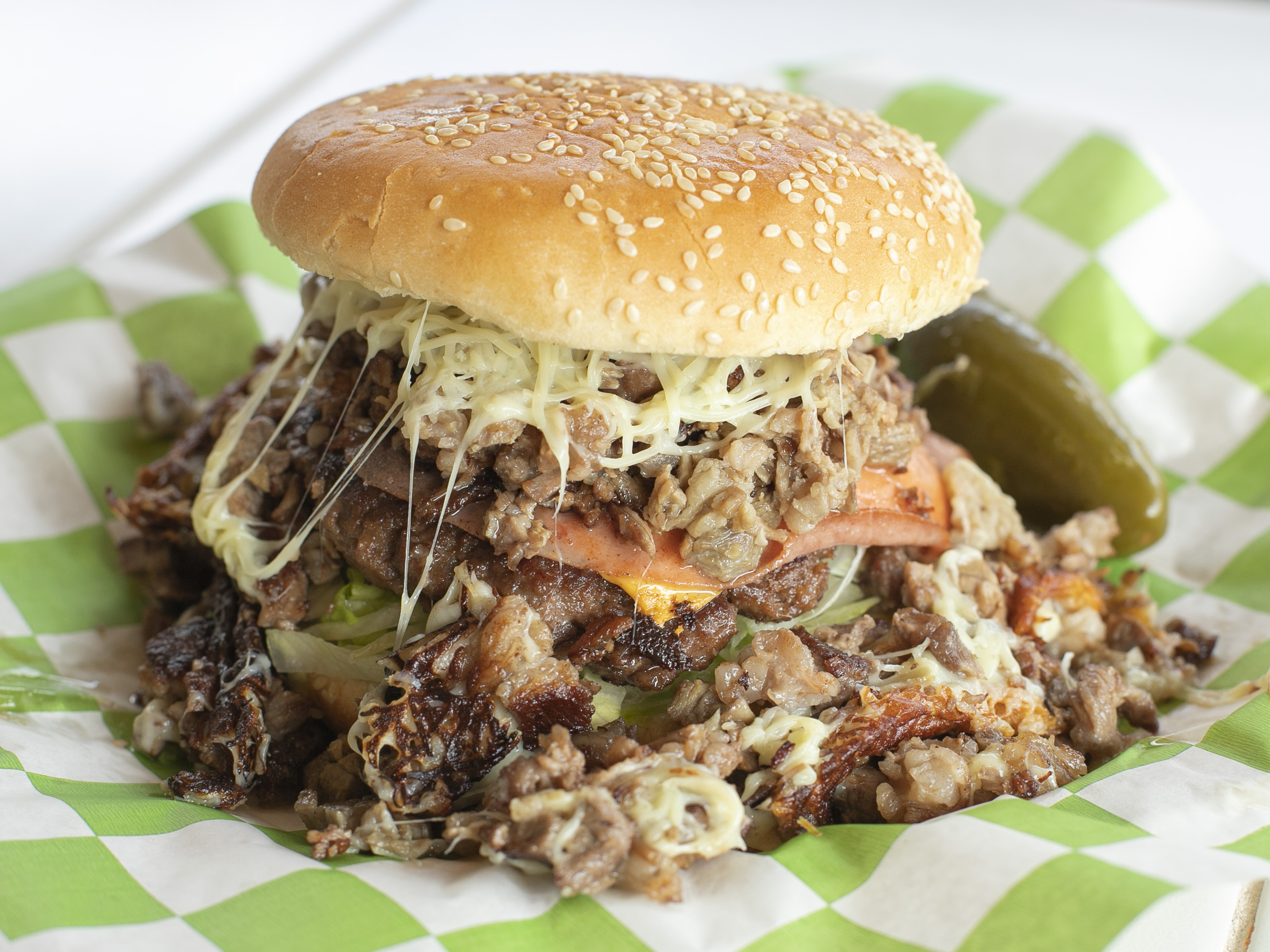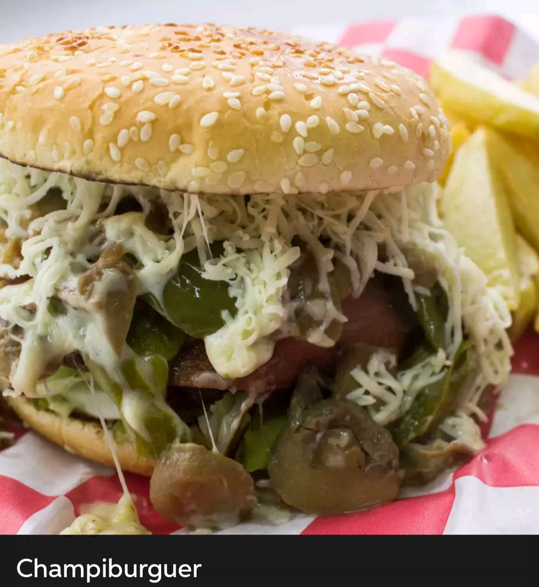 Todo una hamburguesa normal más agregado un guiso de champiñones