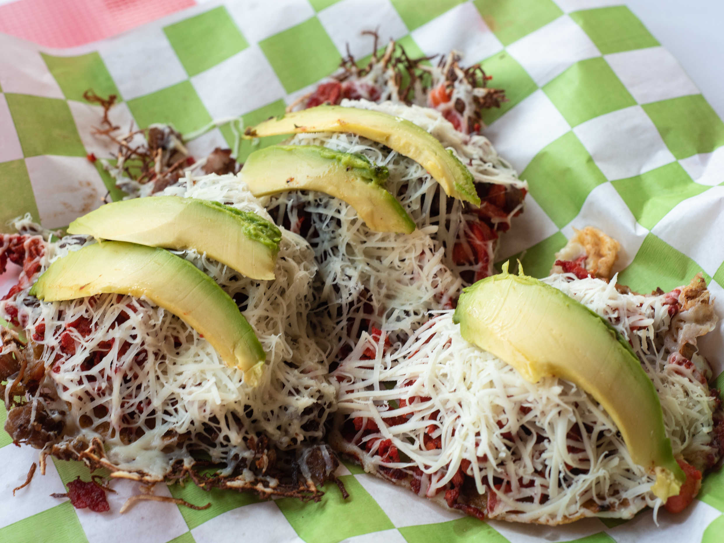 Salsas cebolla asada pico de gallo y limón tortilla de harina con queso y trompo