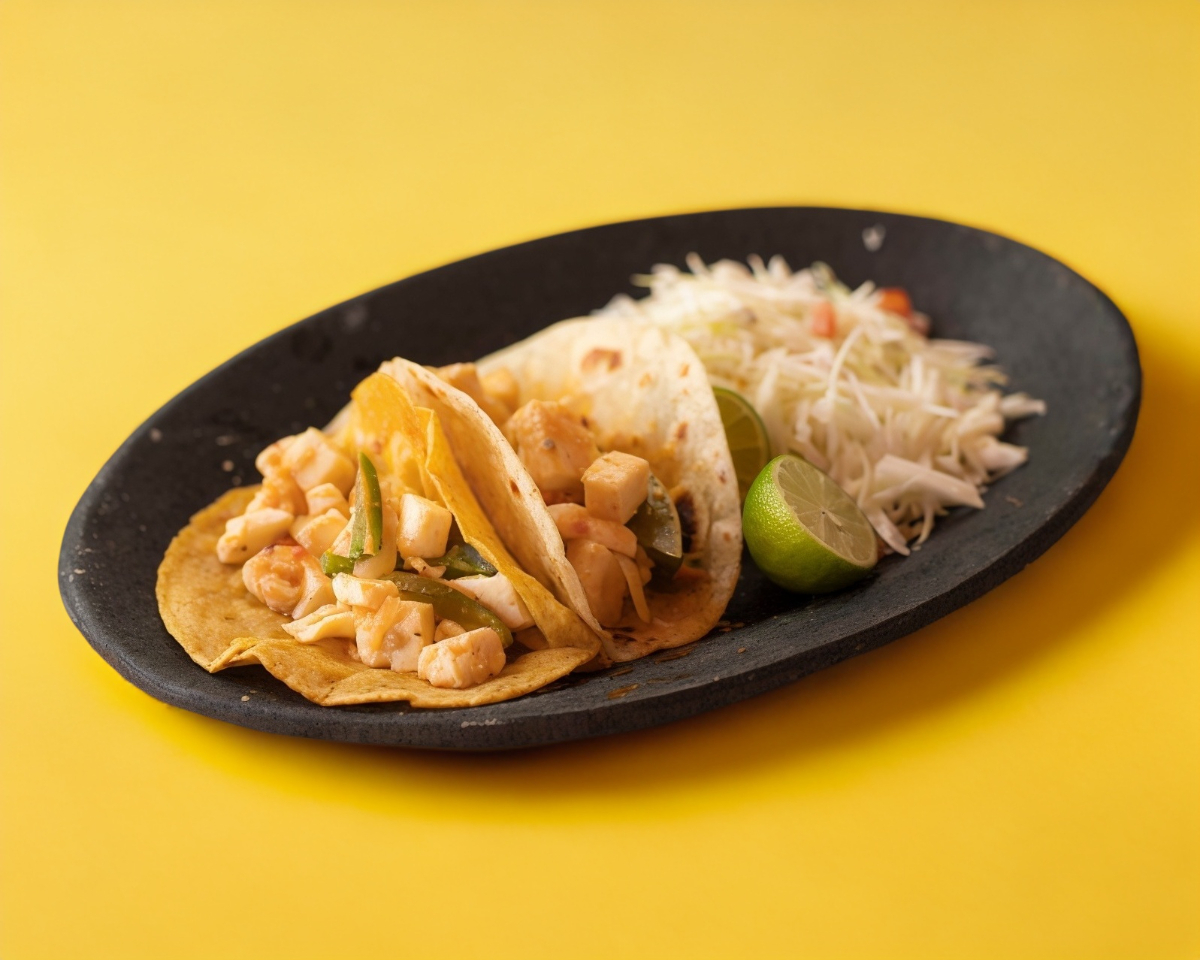 Fajitas de pollo a la plancha con pico de gallo guisado, acompañada de arroz, frijoles o verduras, con tortillas de maíz