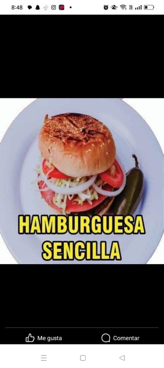 Carne de hamburguesa casera de res, mayonesa, cátsup, aguacate, tomate, lechuga, jamón y queso amarillo.