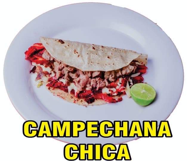 Tortilla de harina, carne de trompo, queso asadero, cebolla picada, guisada, salsa verde y roja.