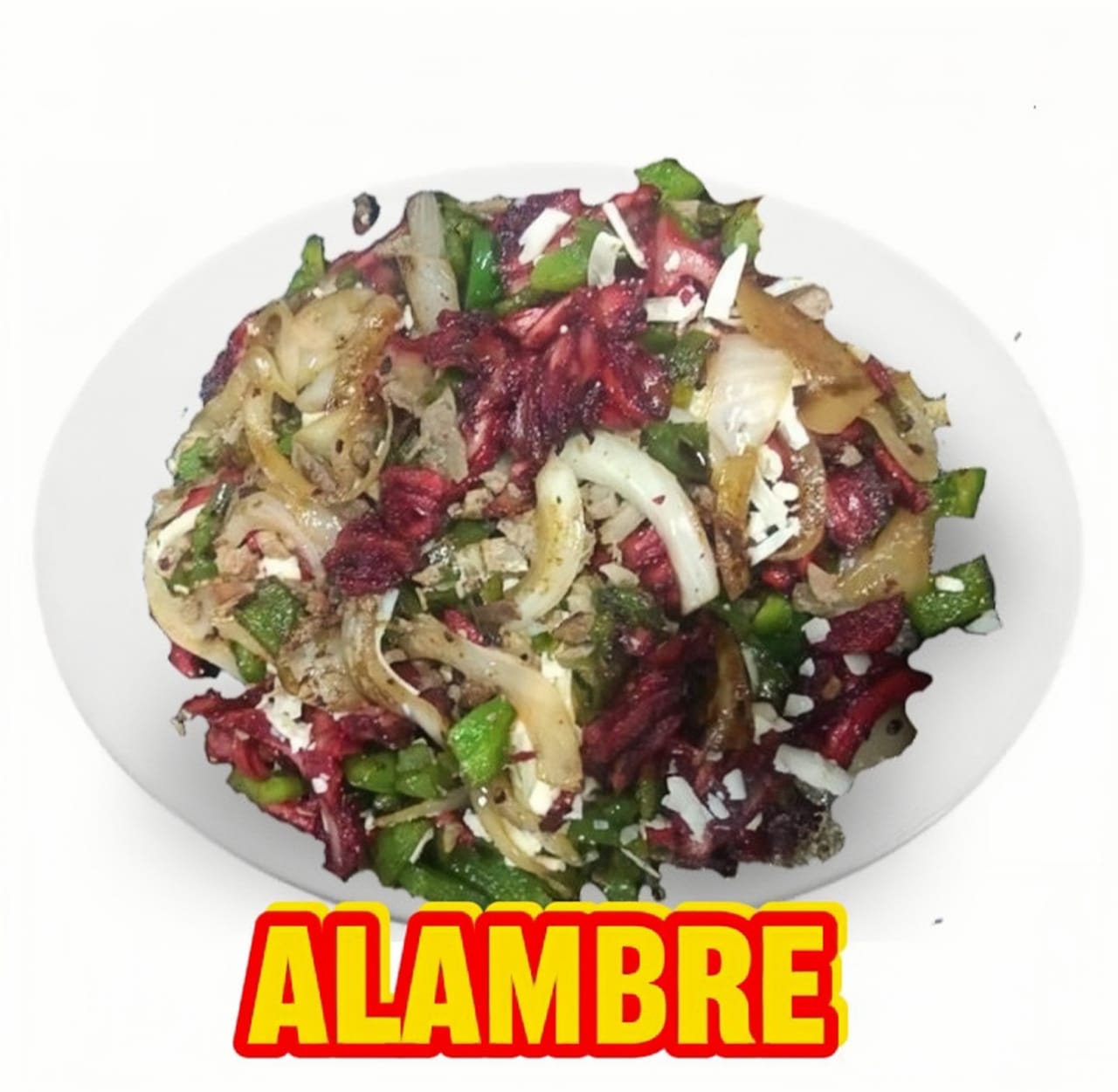 Chile morrón, piña natural, cebolla guisada, carne de trompo, bistec, queso asadero y tortillas. Para aproximadamente 2 personas.