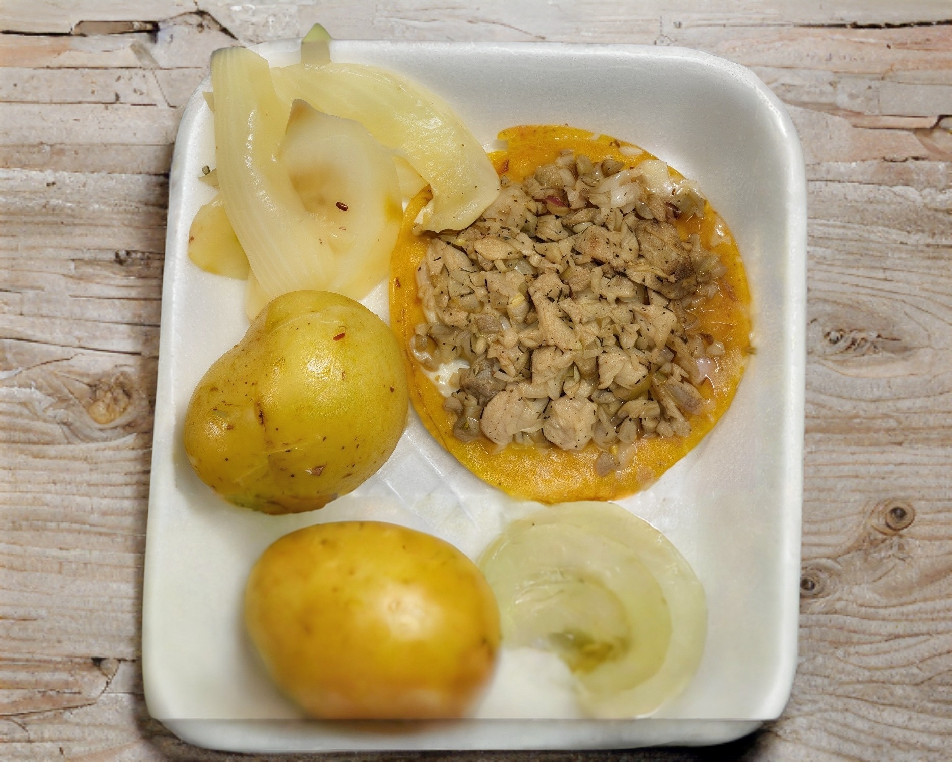 Papa al horno rellena con carne al pastor.
