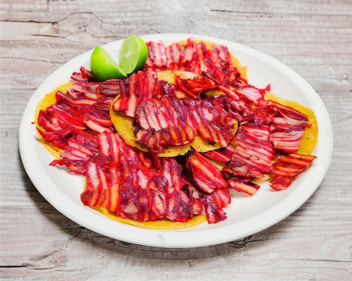 Orden de 5 tacos. Incluye carne de trompo, salsa, cebolla, cilantro y limón. Plato personal