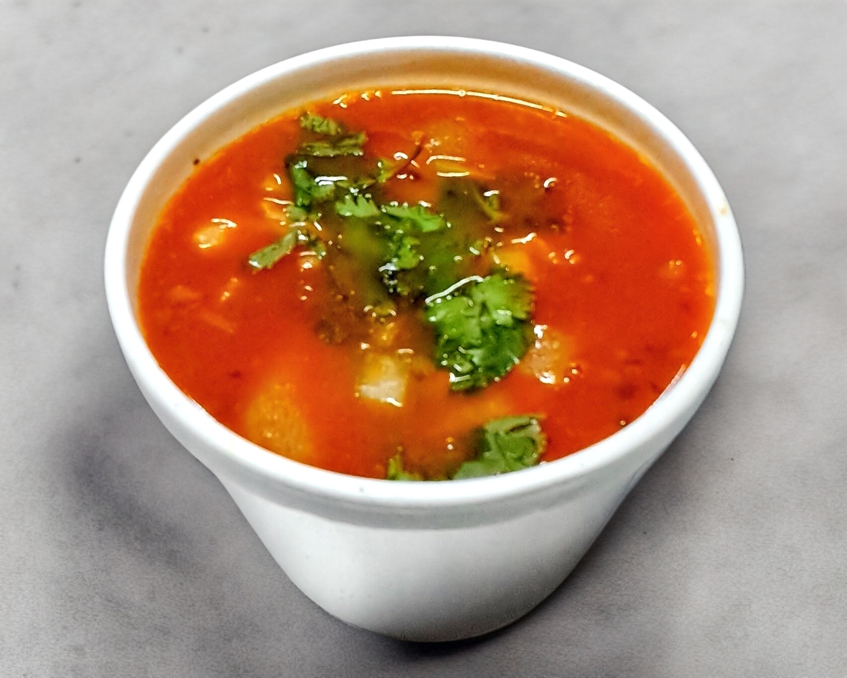 Lleva cebolla con cilantro, salsas limones y papitas de galeana.