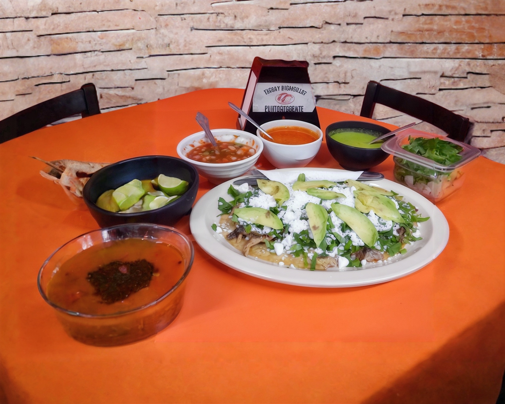 Pollo , machacado , desebrada , carne azada , mollejas en chiltepin , pastor , chorizo , chicharron en salsa, etc