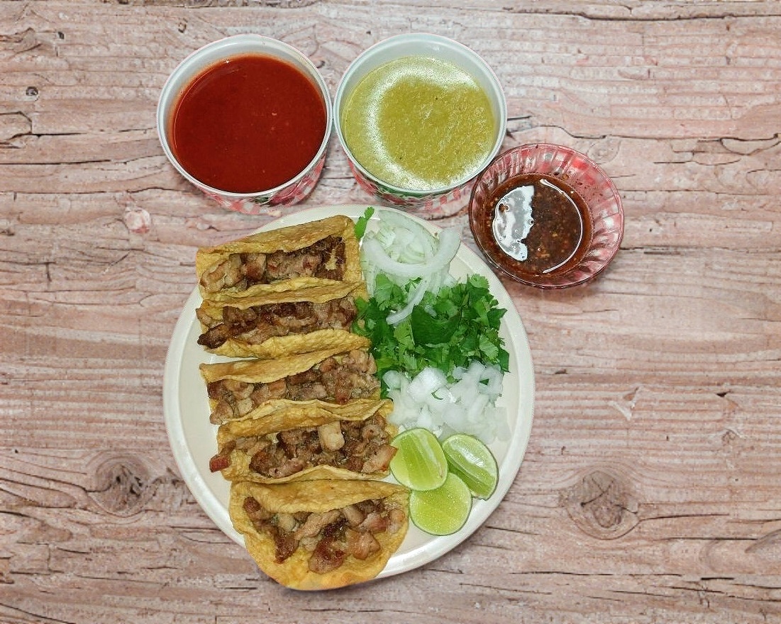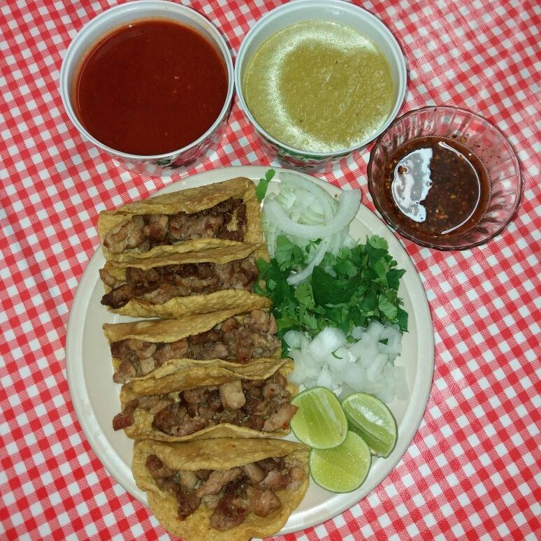 Orden de 5 tacos de la carne de tu elección. Pastor , chicharron ,carne azada , chorizo con bistek ,desebrada , pollo,papas con chorizo, azado de puerco , etc