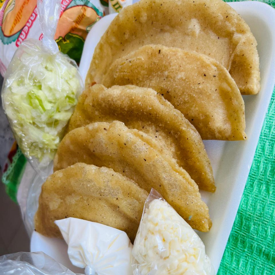 Queso + crema + lechuga + 2 salsas + la orden de 5 empanadas