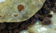 Carne de trompo y queso asadero con poco carne de bistec, con cebolla limón y salsa