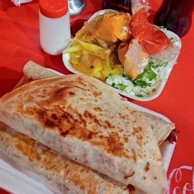 La mezcla ideal de bistec, trompo y queso en tortilla de harina.