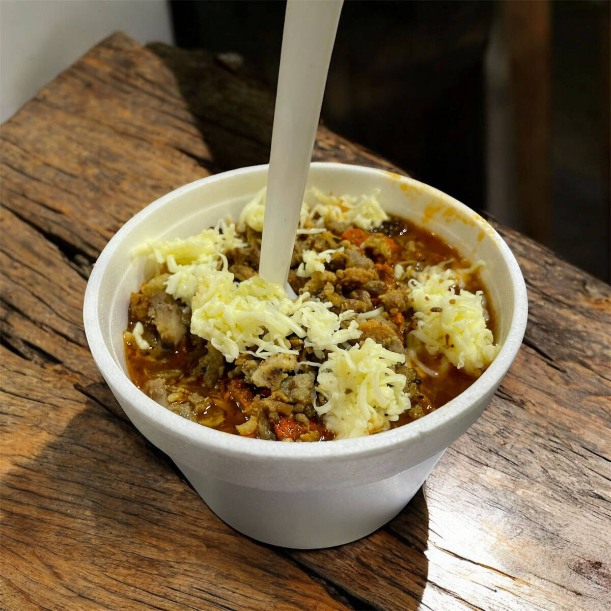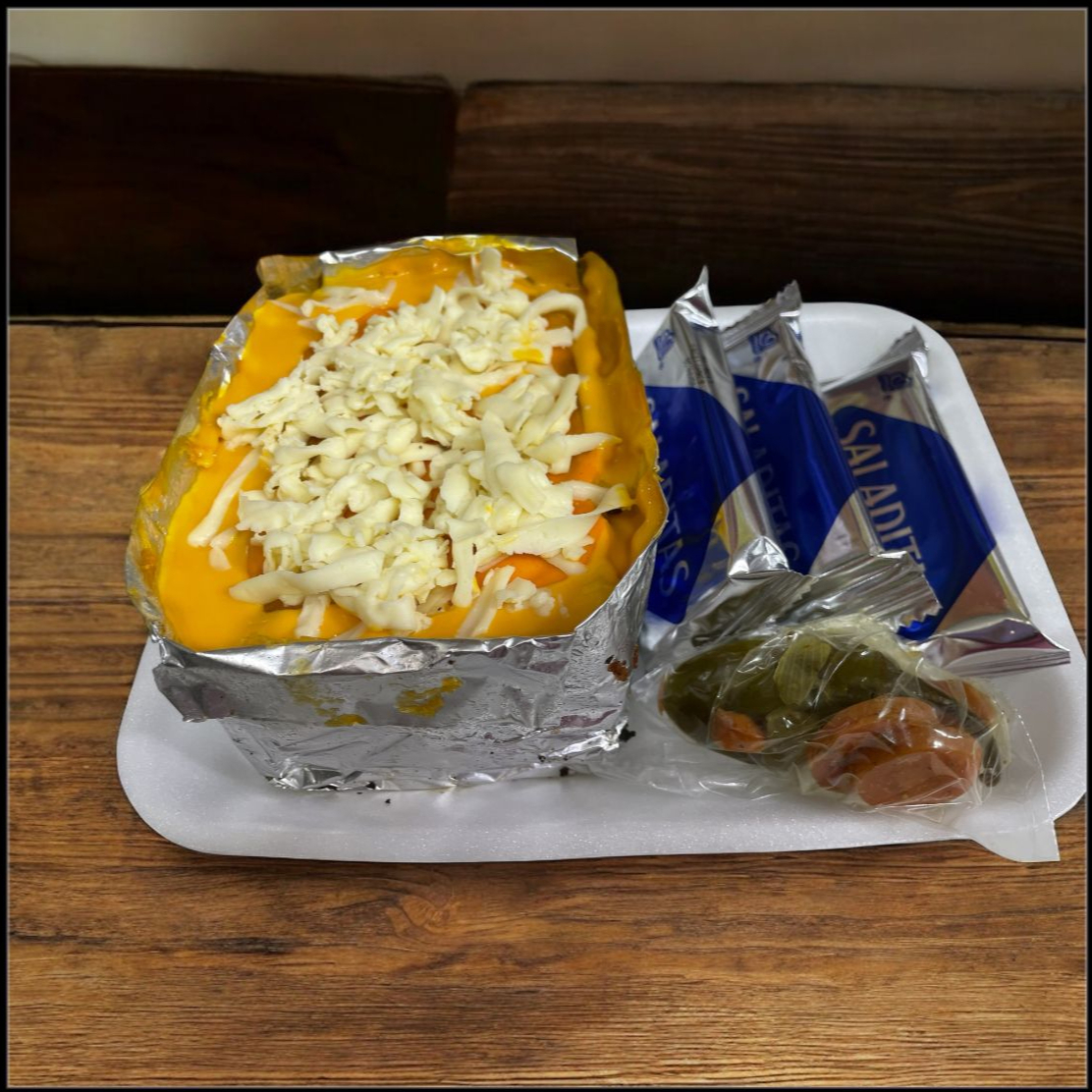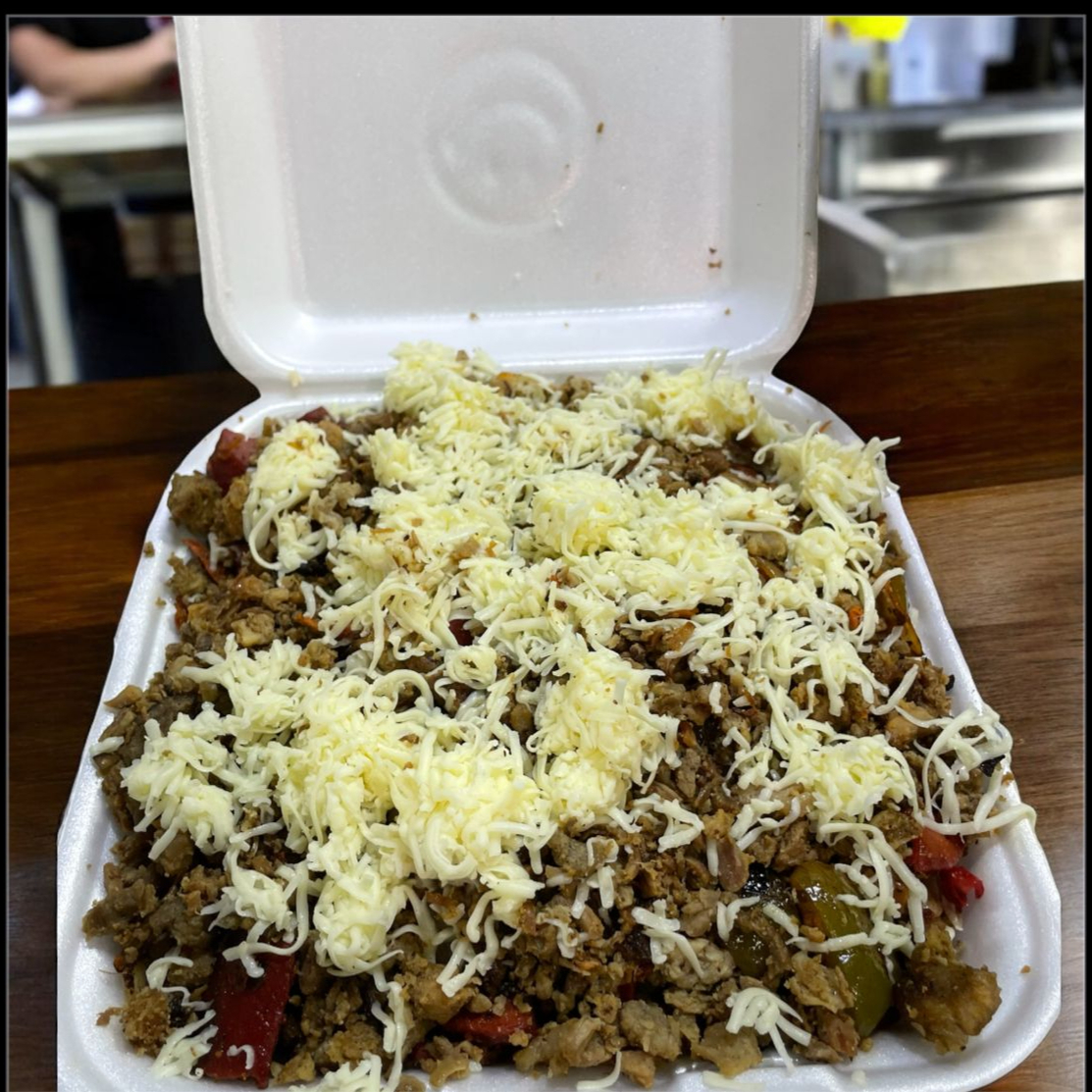 Una porción de papas fritas incluye queso amarillo y carne de trompo