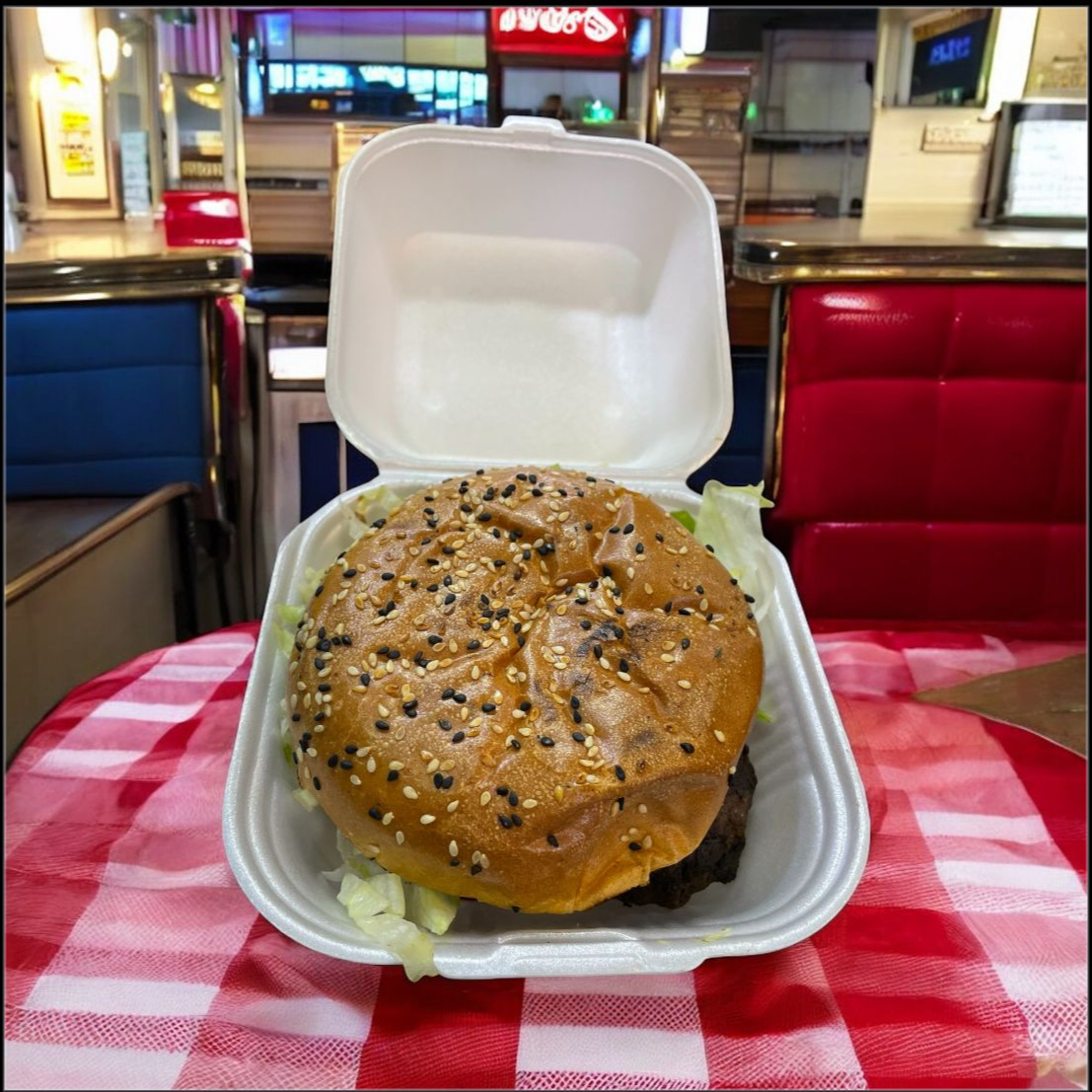 Pan parrillero con carne de hamburguesa casera y salchicha asada, incluye lechuga, aguacate, y jitomate
