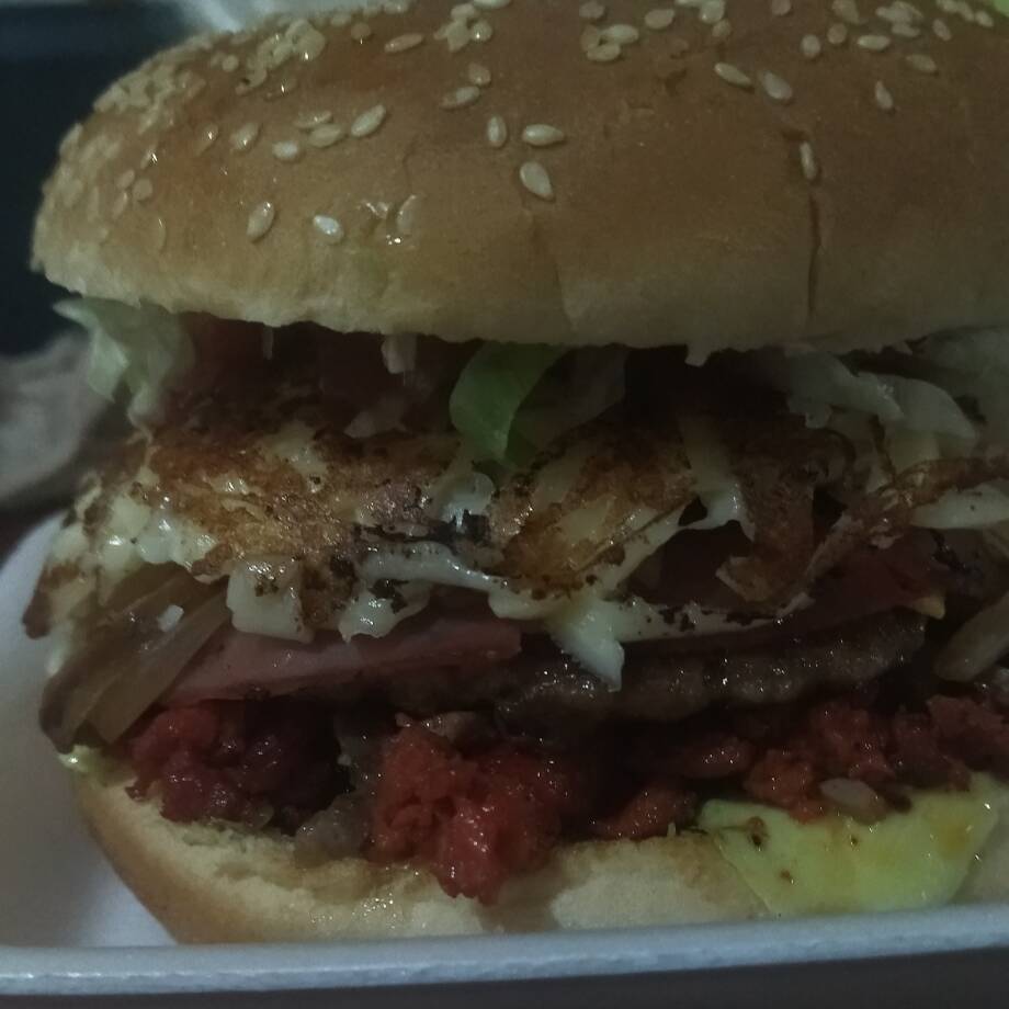 Personal ,Aprox, 180 gr de carne cocida en carbón y noestro aderezo mamalon con tocino lechuga tomate aguacate queso manchego y queso asadero