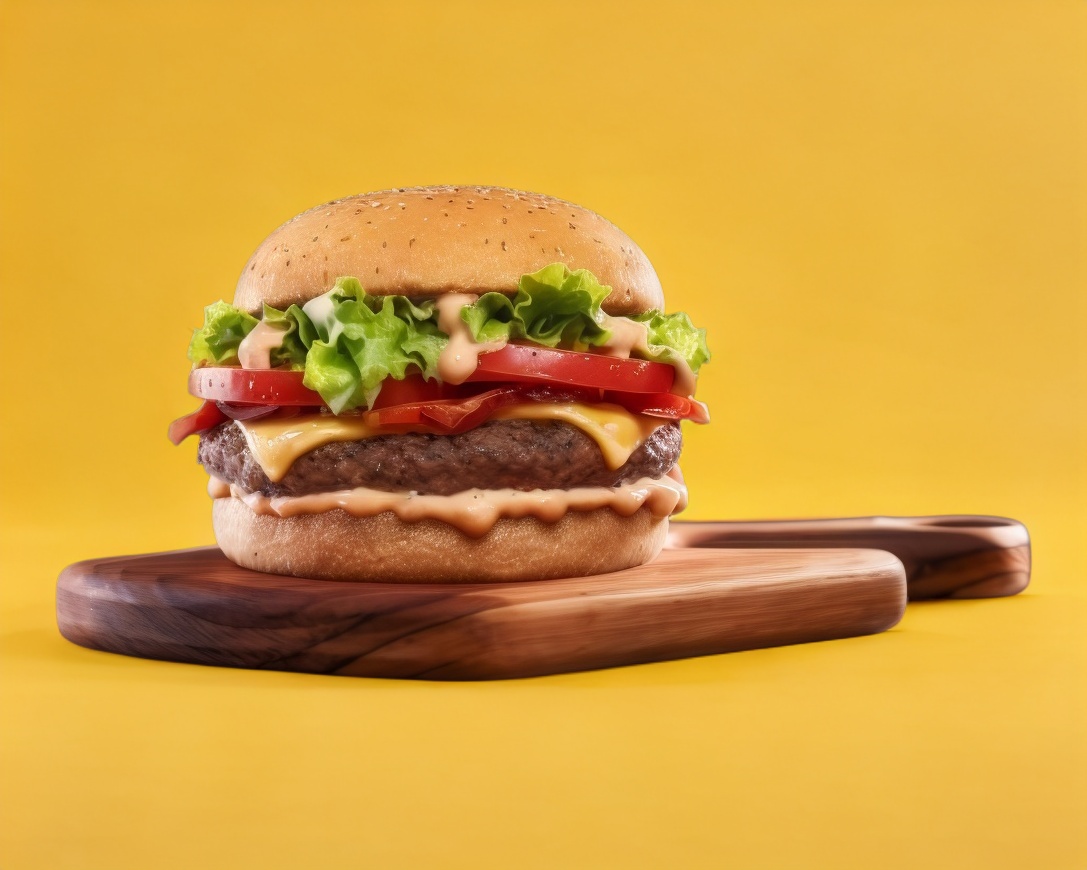 Deliciosa doble carne de res con queso y jamón con cebolla, tomate y lechuga, kétchup y mayonesa.