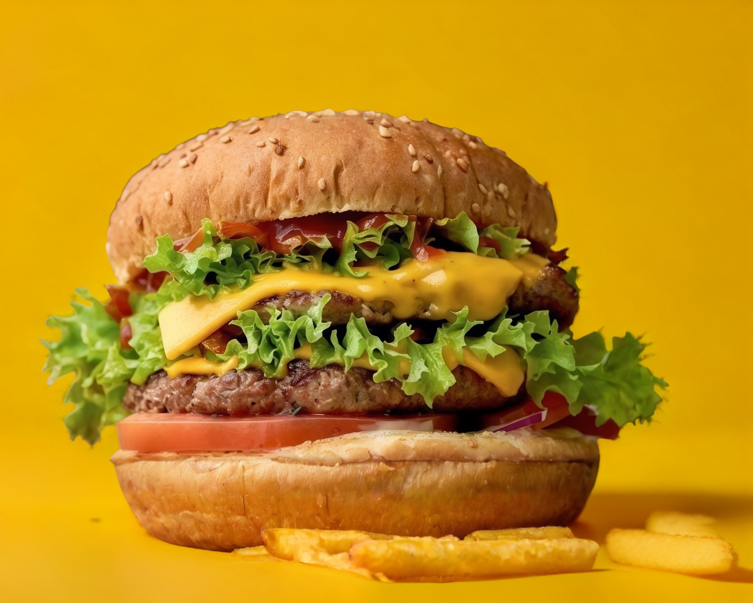 Deliciosa doble carne de res con queso y jamón con cebolla, tomate y lechuga, ketchup y mayonesa.