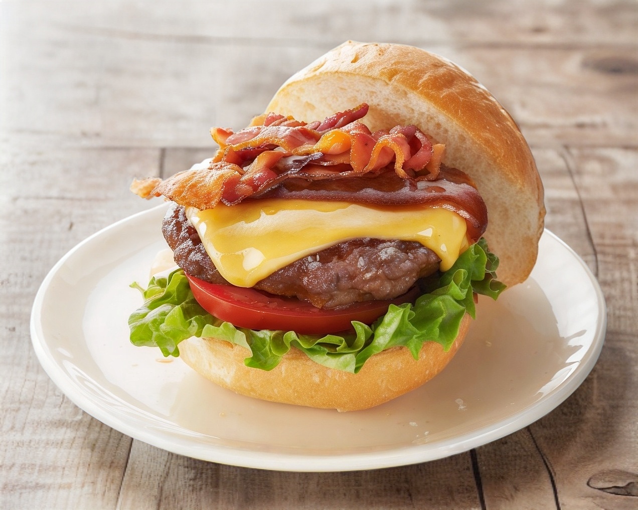 Carne de res con lechuga, tomate, queso amarillo, aguacate, cátsup, mayonesa y papas a la francesa.