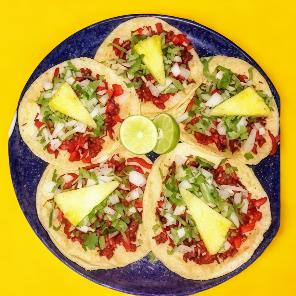 Cinco tacos sin tortilla de maíz con carne de trompo
