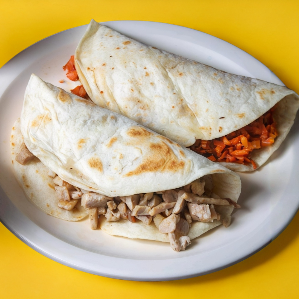 Tortilla de harina con queso trompo cebolla poblano jamón