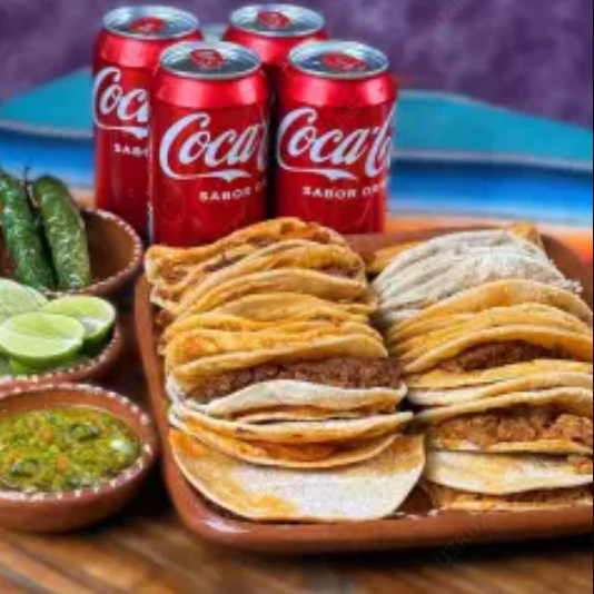 COMBO FAMILIAR CON 20 TACOS A ELEGIR ACOMPAÑADO DE 4 REFRESCOS A ELECCIÓN