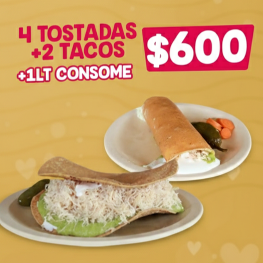 4 Tostadas Esp. + 2 Tacos Esp. + 1 Lt. Consomé