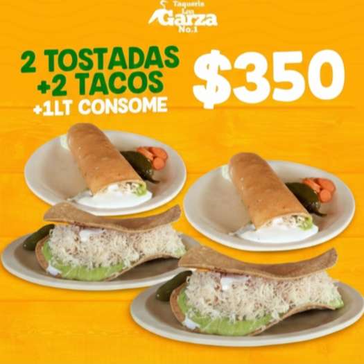2 Tostadas Esp. + 2 Tacos Esp. + 1 Lt. Consomé