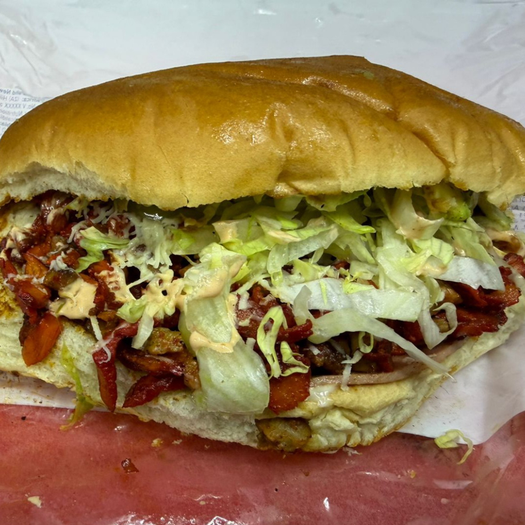 pan telera mayonesa aguacate lechuga cebolla asada mixto de carne de bistec y trompo gratinado con queso porcion de papas ala francesa