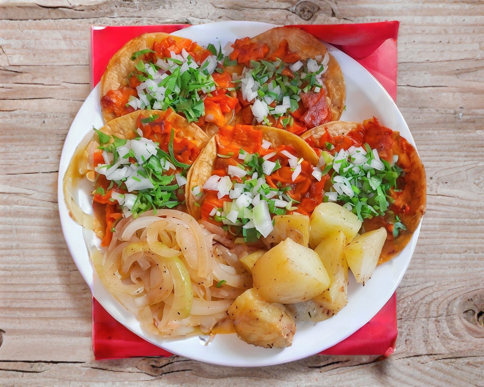 Orden de 5 tacos acompañado de papa galeana y cebolla cocida.