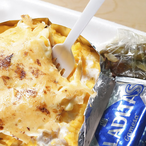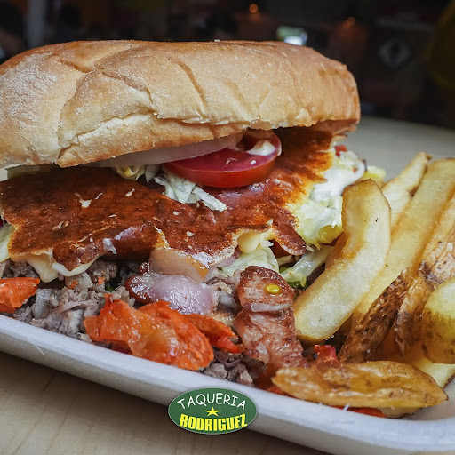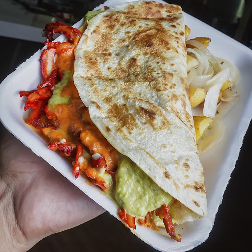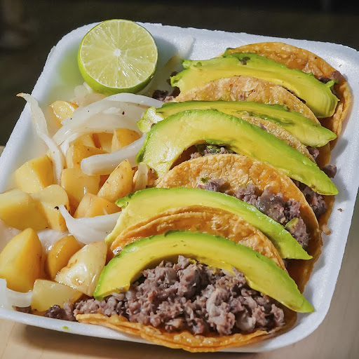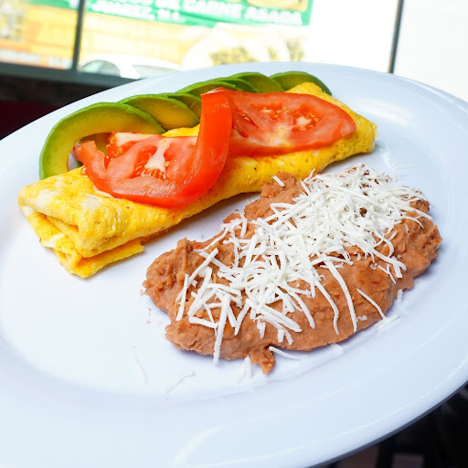 Se acompaña de frijoles refritos, salsa y aguacate.