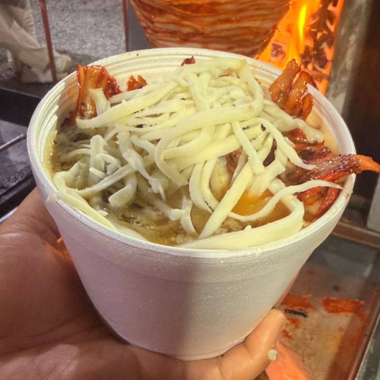 Medio litro de Frijoles a la charra, preparados con queso, carne de res o trompo. .