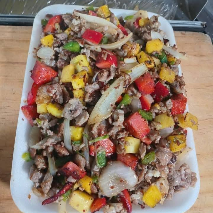 Hamburguesa con 1 carne de res, piña, 1 jamón, 2 quesos, mayonesa, aderezo, cátsup, aguacate y lechuga.