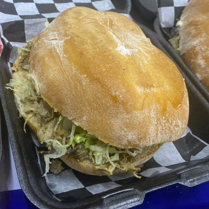 Hamburguesa con 2 carnes de res, piña, 3 jamones, 3 quesos, mayonesa, aderezo, cátsup, aguacate y lechuga.