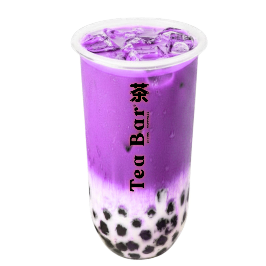 Milk Tea de taro con una porcion de tapioca 24oz, deslactosada con un toque de carnation