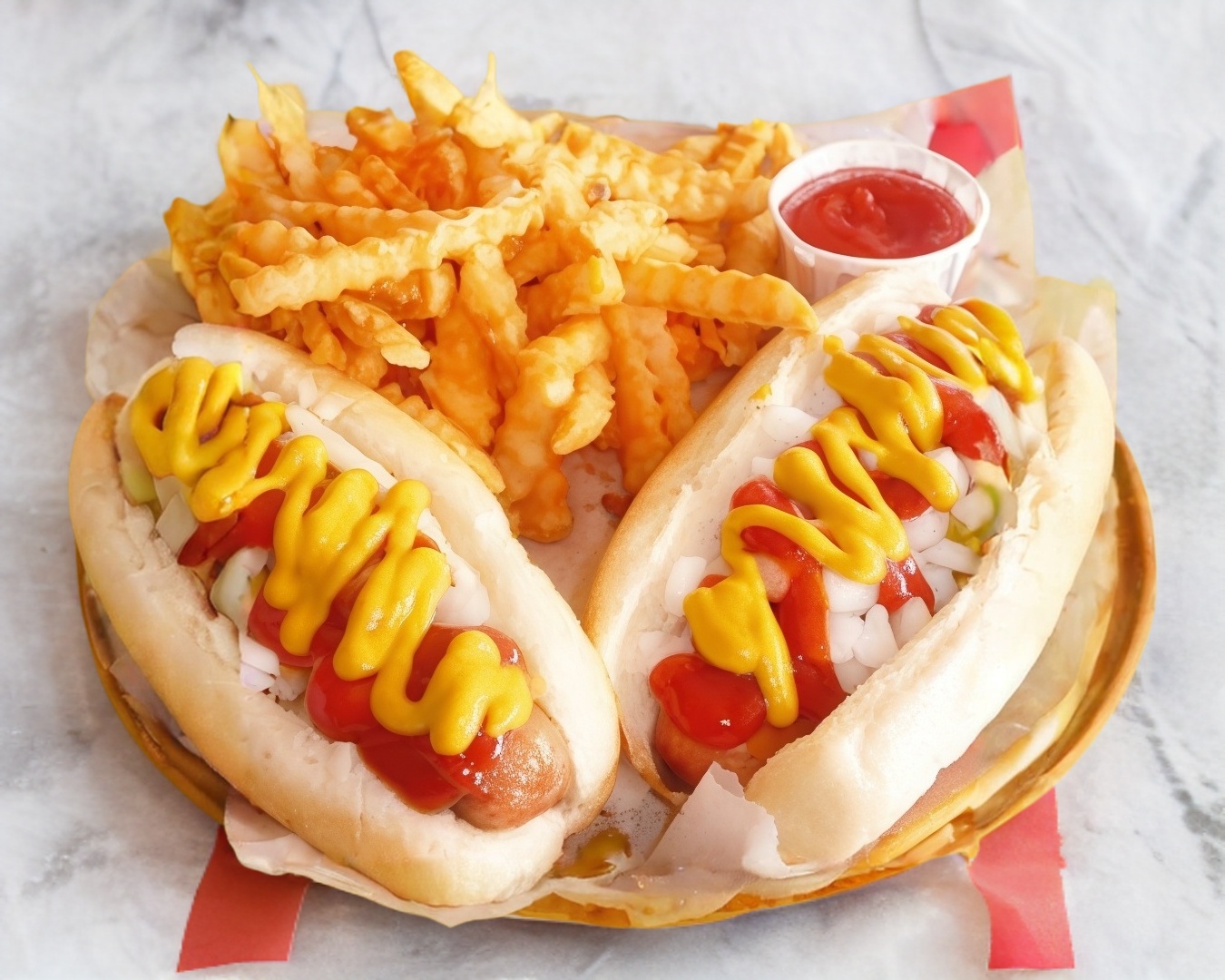 Incluye 2 jumbo dogs, 2 burger clásicas y papas.