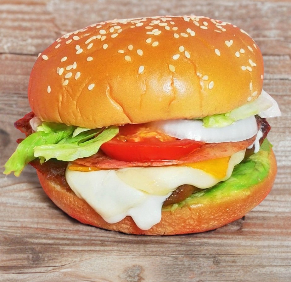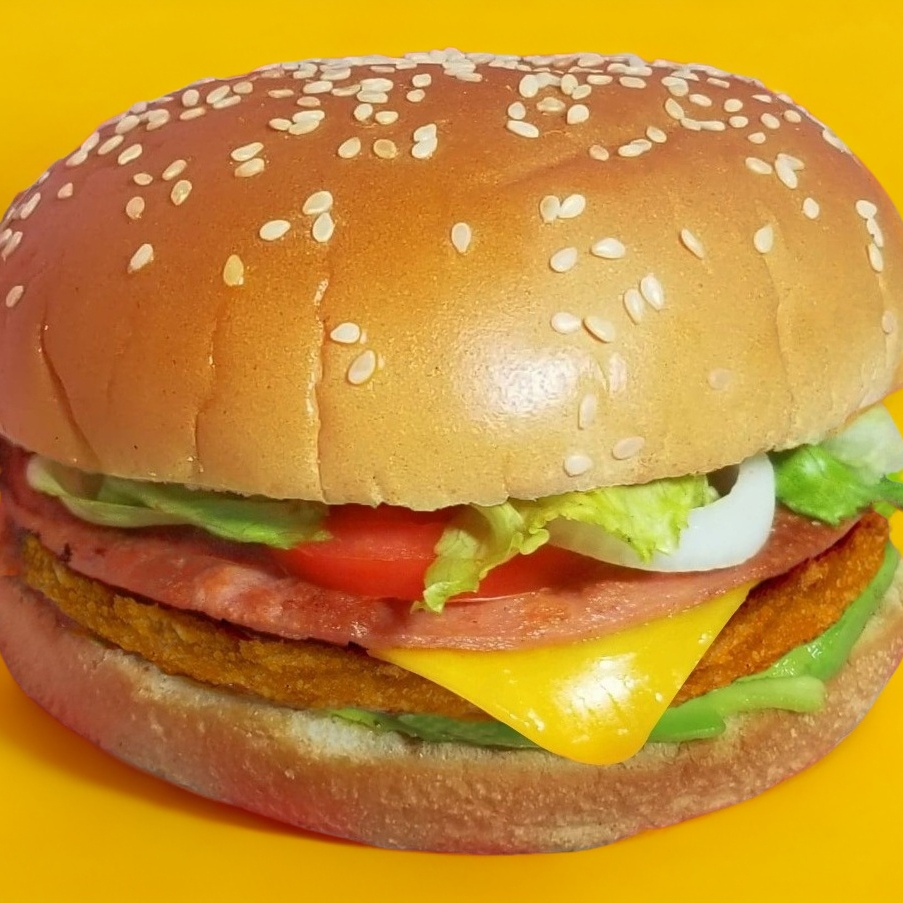 Carne, Tocino, Queso Amarillo, Jamón, Salami, Aguacate, Lechuga, Tomate, Cebolla, Pepinillos, Aderezos(Catsup, Aderezo & Mostaza).