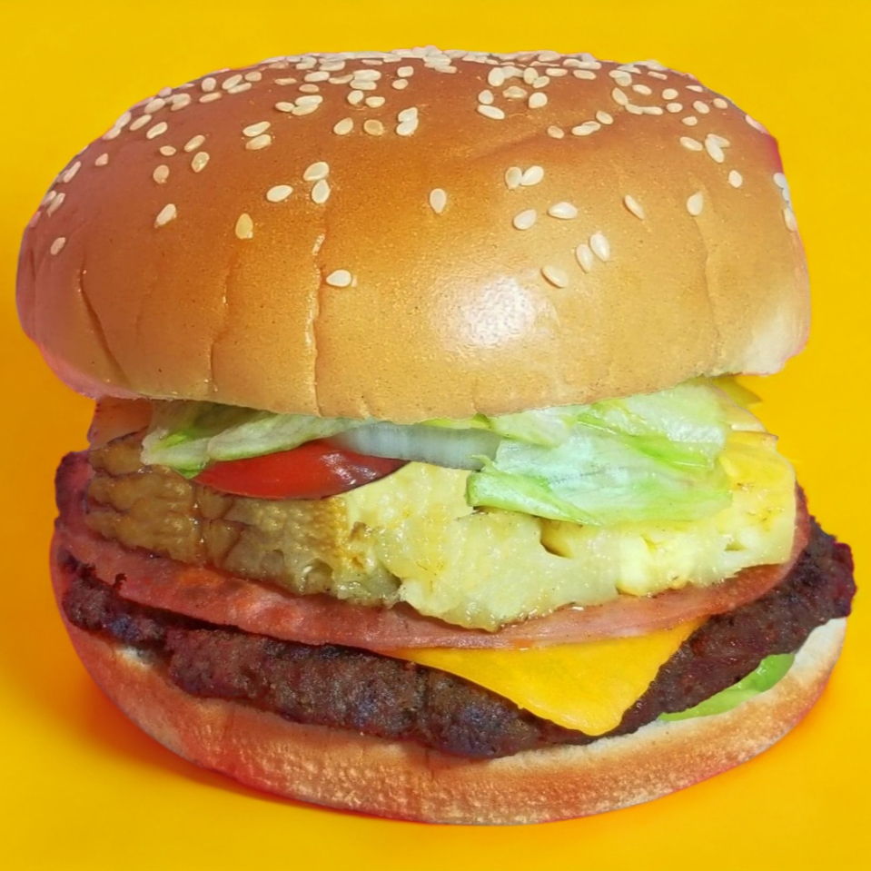 Carne, Piña, Queso Amarillo, Jamón, Salami, Aguacate, Lechuga, Tomate, Cebolla, Aderezos(Catsup, Aderezo & Mostaza).