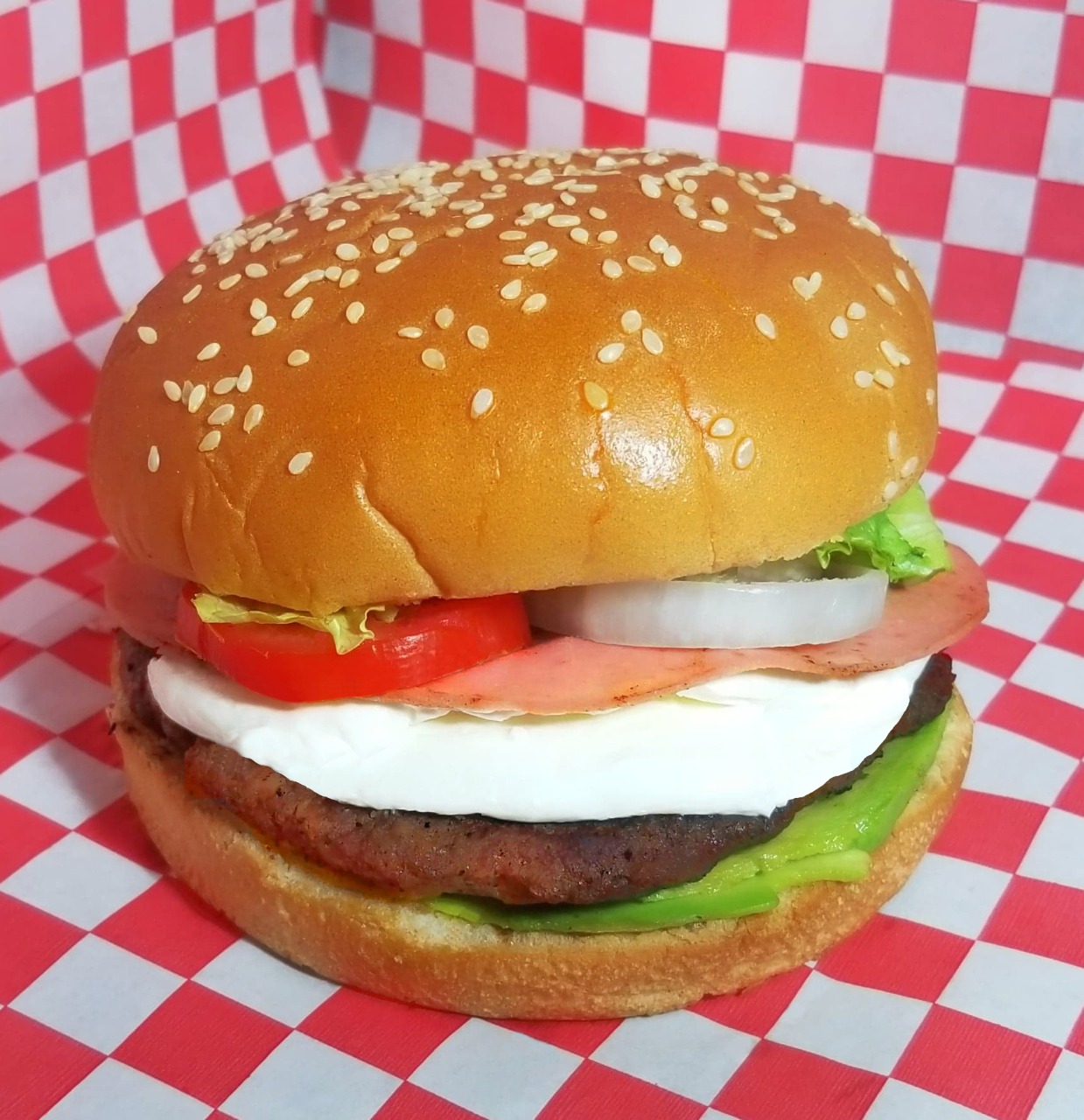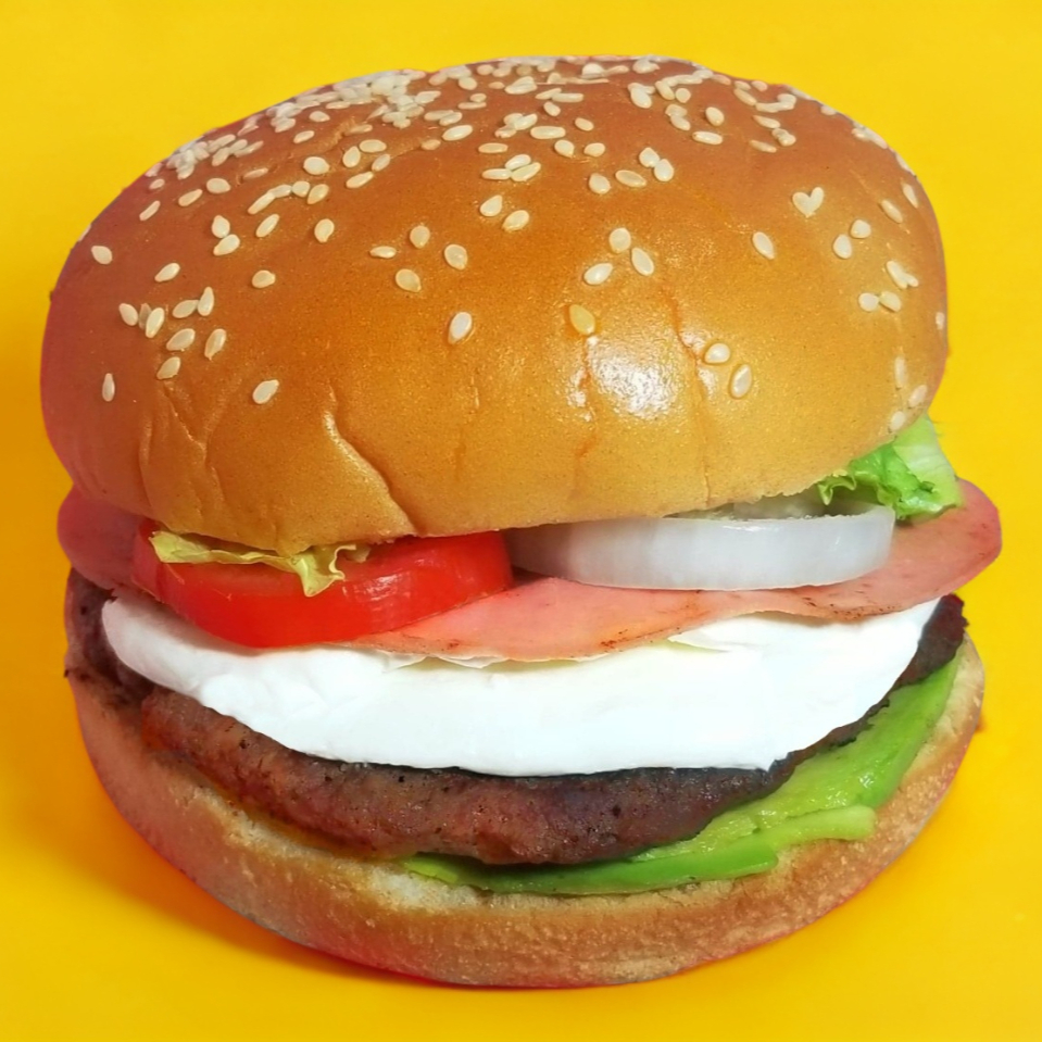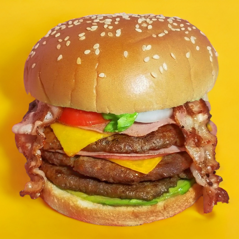 2 Carnes, Tocino, Queso Amarillo, Jamón, Salami, Aguacate, Lechuga, Tomate, Cebolla, Pepinillos, Aderezos(Catsup, Aderezo & Mostaza).