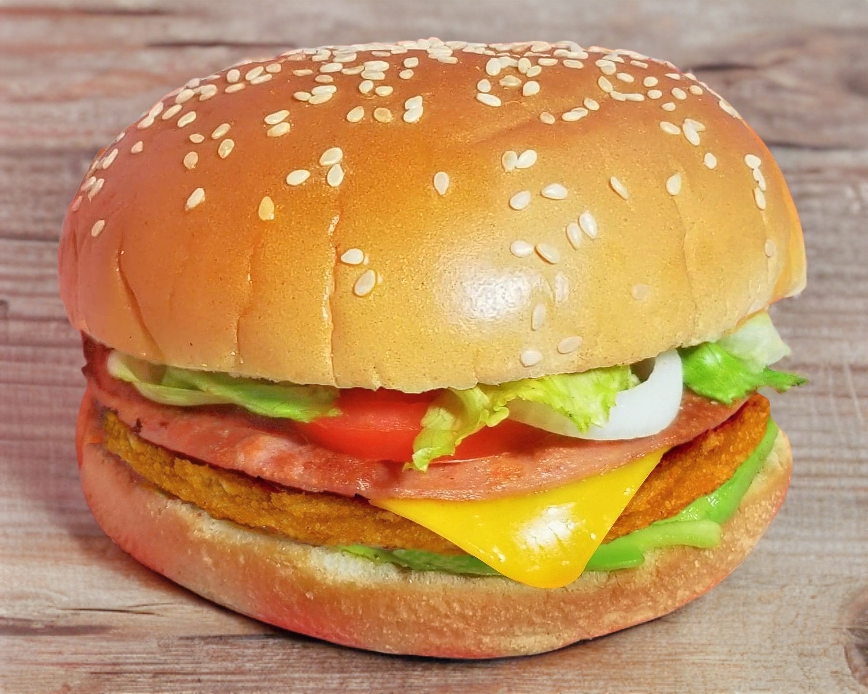 Carne, queso amarillo, jamón, salami, aguacate, lechuga, tomate, cebolla, pepinillos, aderezos ( cátsup, aderezo, mostaza).