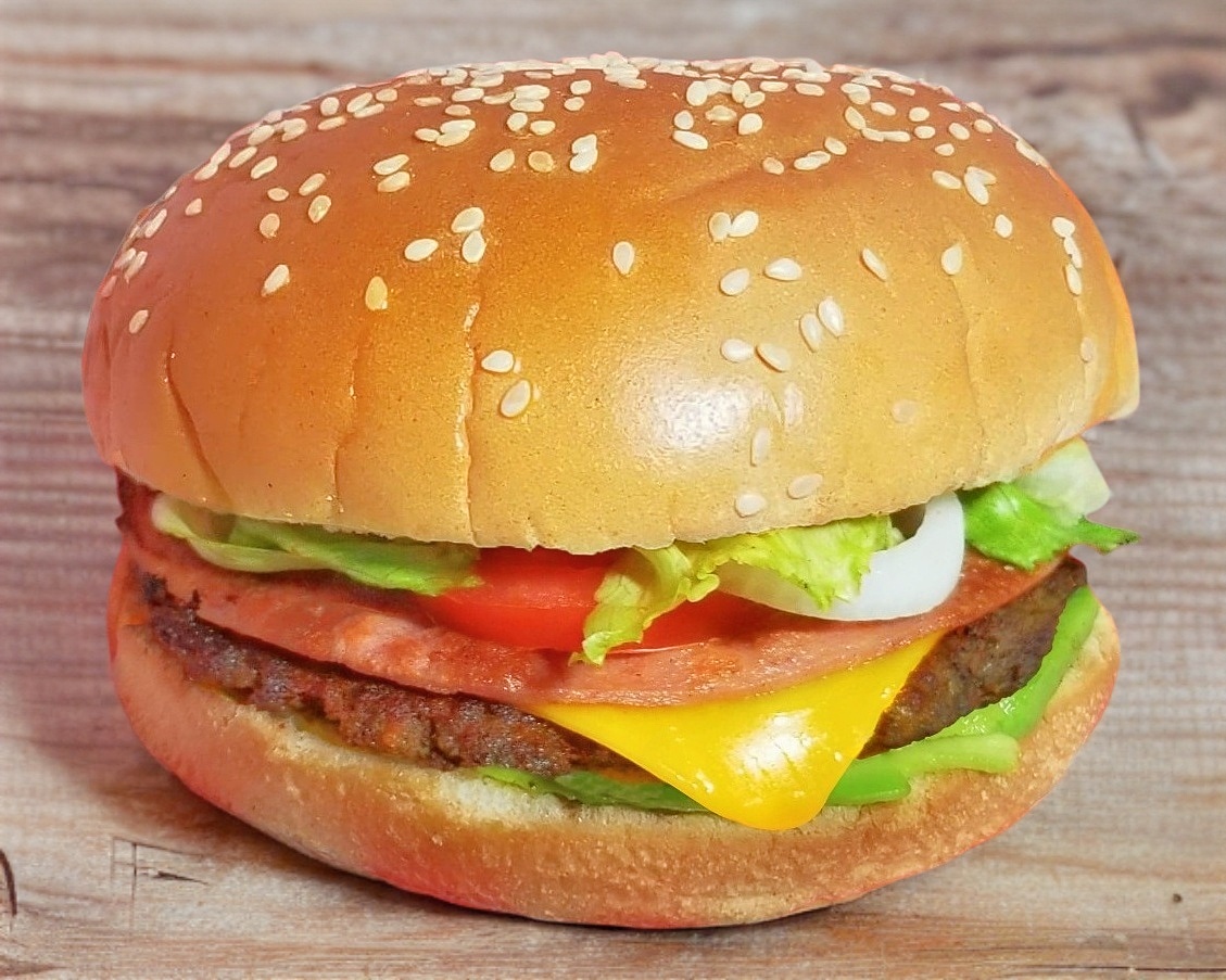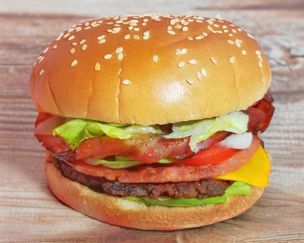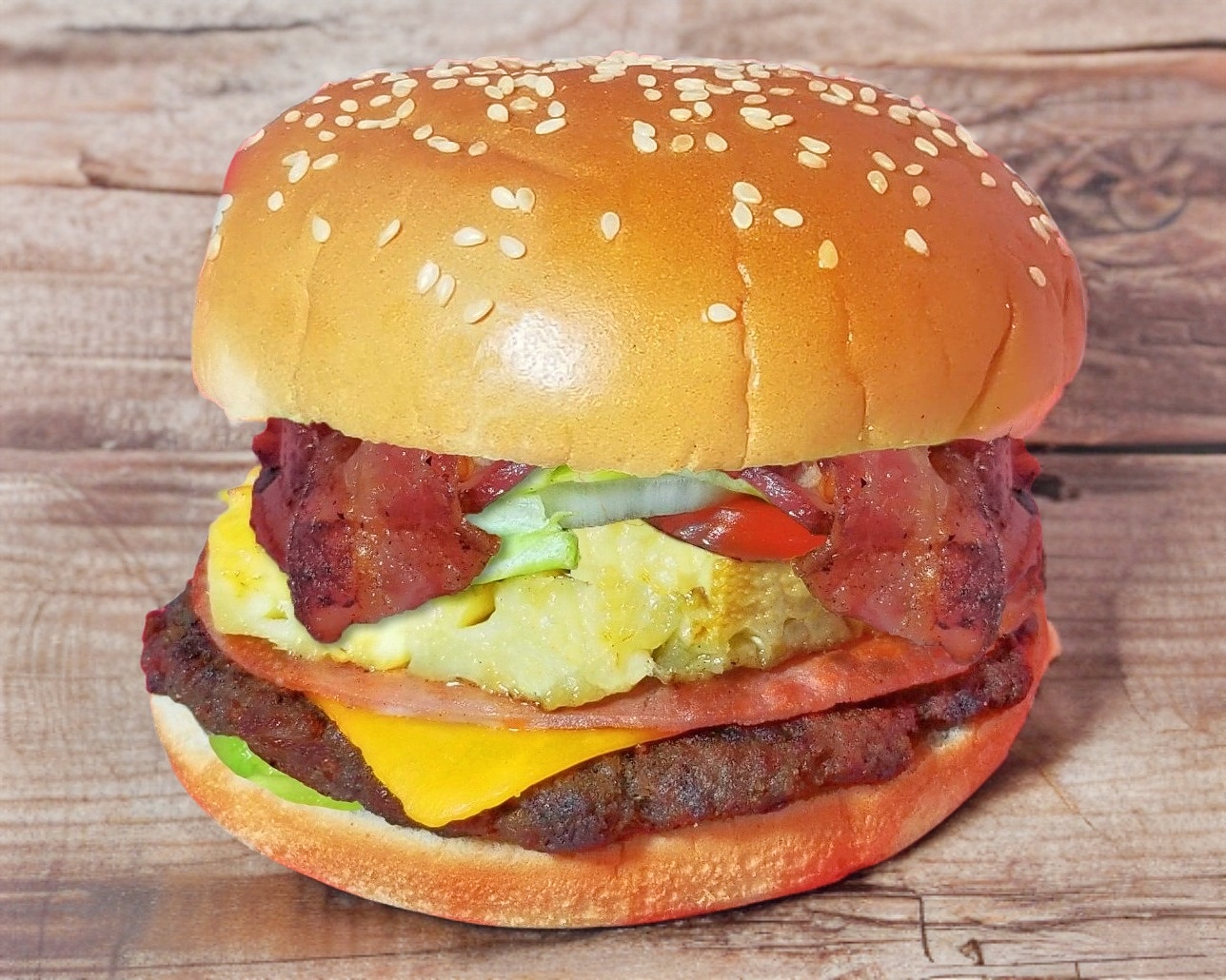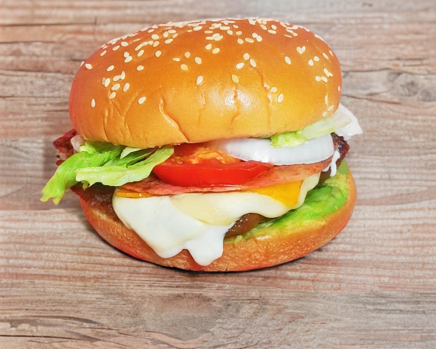Carne, tocino, queso amarillo, jamón, salami, aguacate, lechuga, tomate, cebolla, pepinillos, aderezos ( cátsup, aderezo, mostaza).