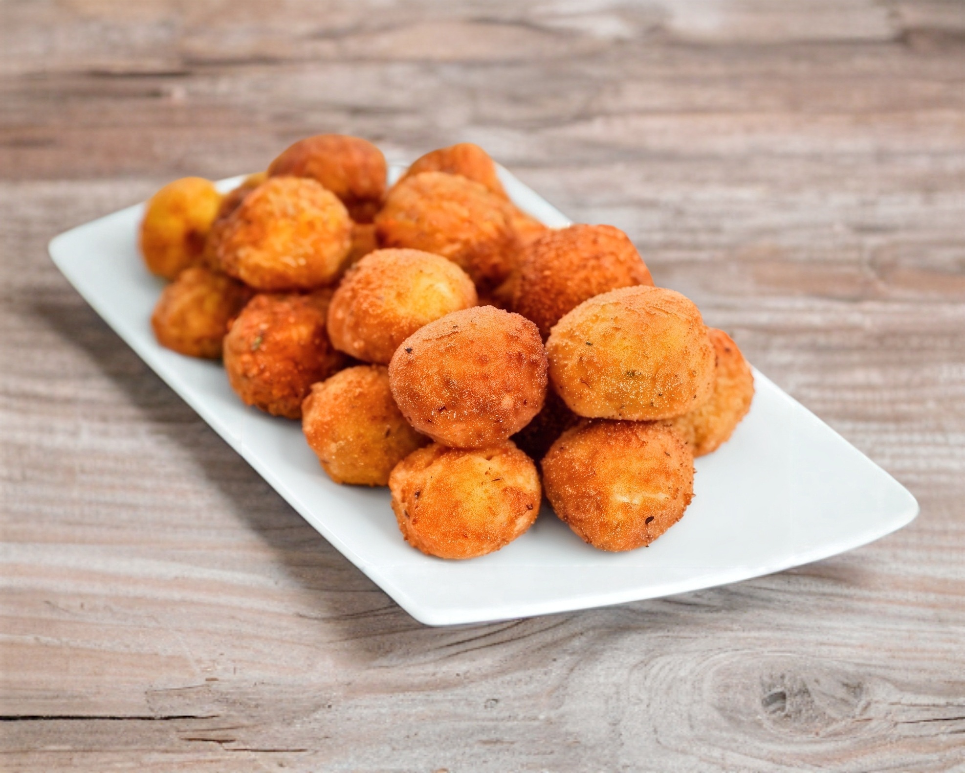 9 pzas, bolitas de papa, rellenas de queso amarillo & jalapeño.
