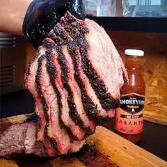 Pecho de res al famoso Texas style técnica de ahumado en leña de roble por 12 h.