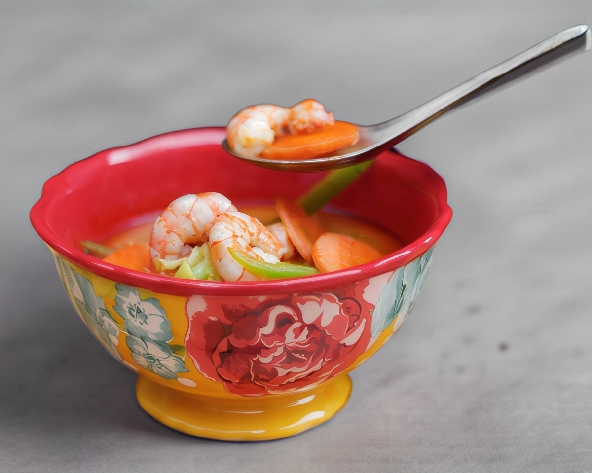 Sopa Tailandesa agripicante con verduras, pollo y un toque de leche de coco, picante.