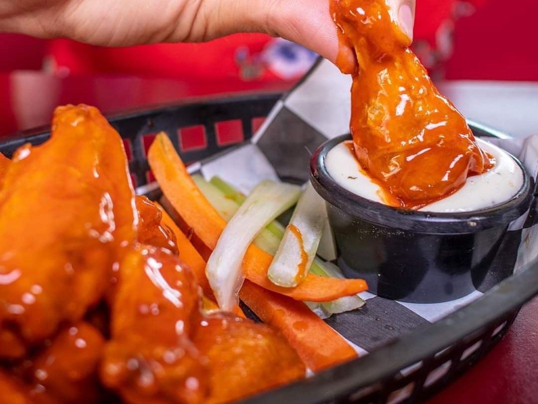 4 piezas de Alitas, acompañadas de papás a la francesa ,aderezo ranch, baritas de apio y zanahorias