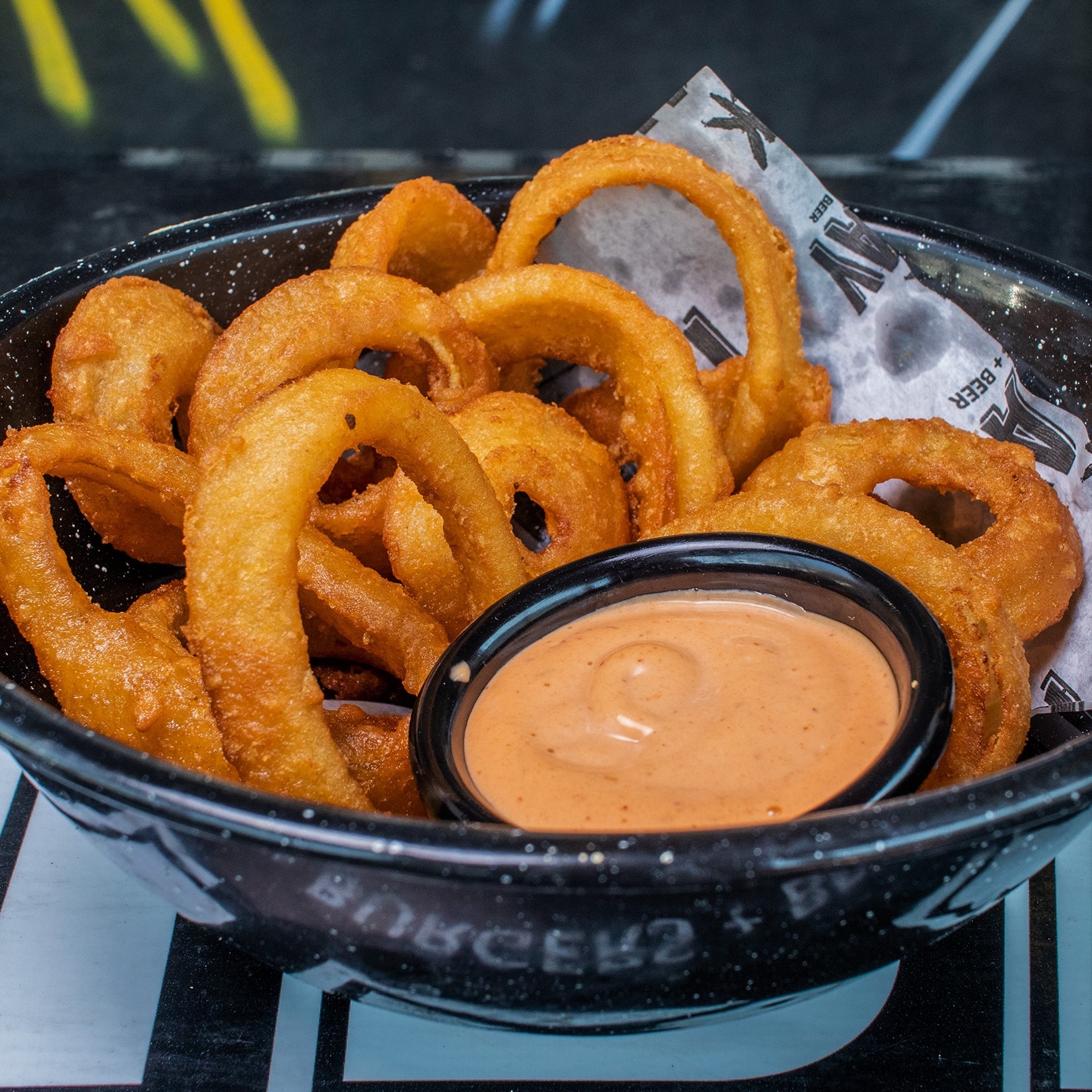 Medio kilogramo de boneless, medio kilogramo de alitas, bañados en una salsa, acompañada de papas fritas con lemon pepper, 2 aros de cebolla, 2 popers, 2 dedos de varitas de jicama apios, zanahorias y aderezo de la casa blue cheese. Incluye papas fritas.